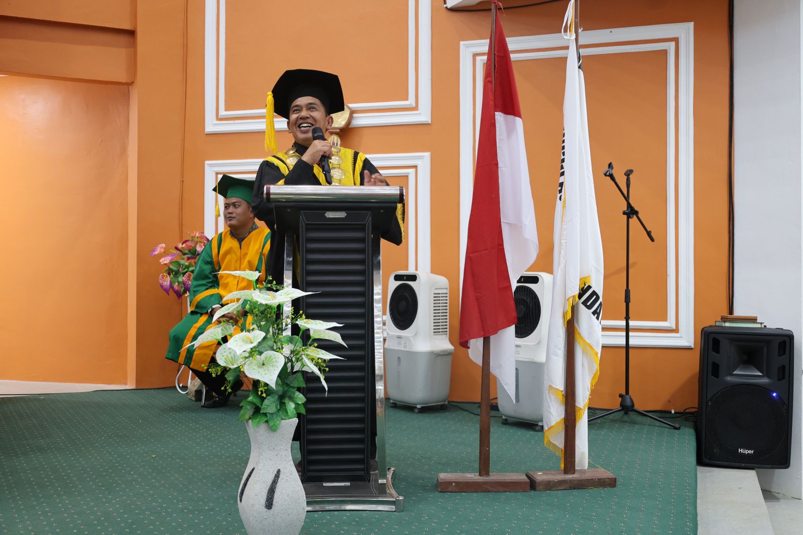 “Tantangan ke depan akan jauh lebih kompleks daripada yang dibayangkan. Karena itu, tanamkan dalam diri mindset sebagai sarjana pejuang dan petualang ilmu, bukan sarjana yang manja dan cengeng, sebab dunia pascawisuda menuntut keberanian untuk keluar dari zona nyaman dan menjadikan setiap rintangan sebagai ruang pembelajaran yang mematangkan karakter," Ujar Prof. Sumper.